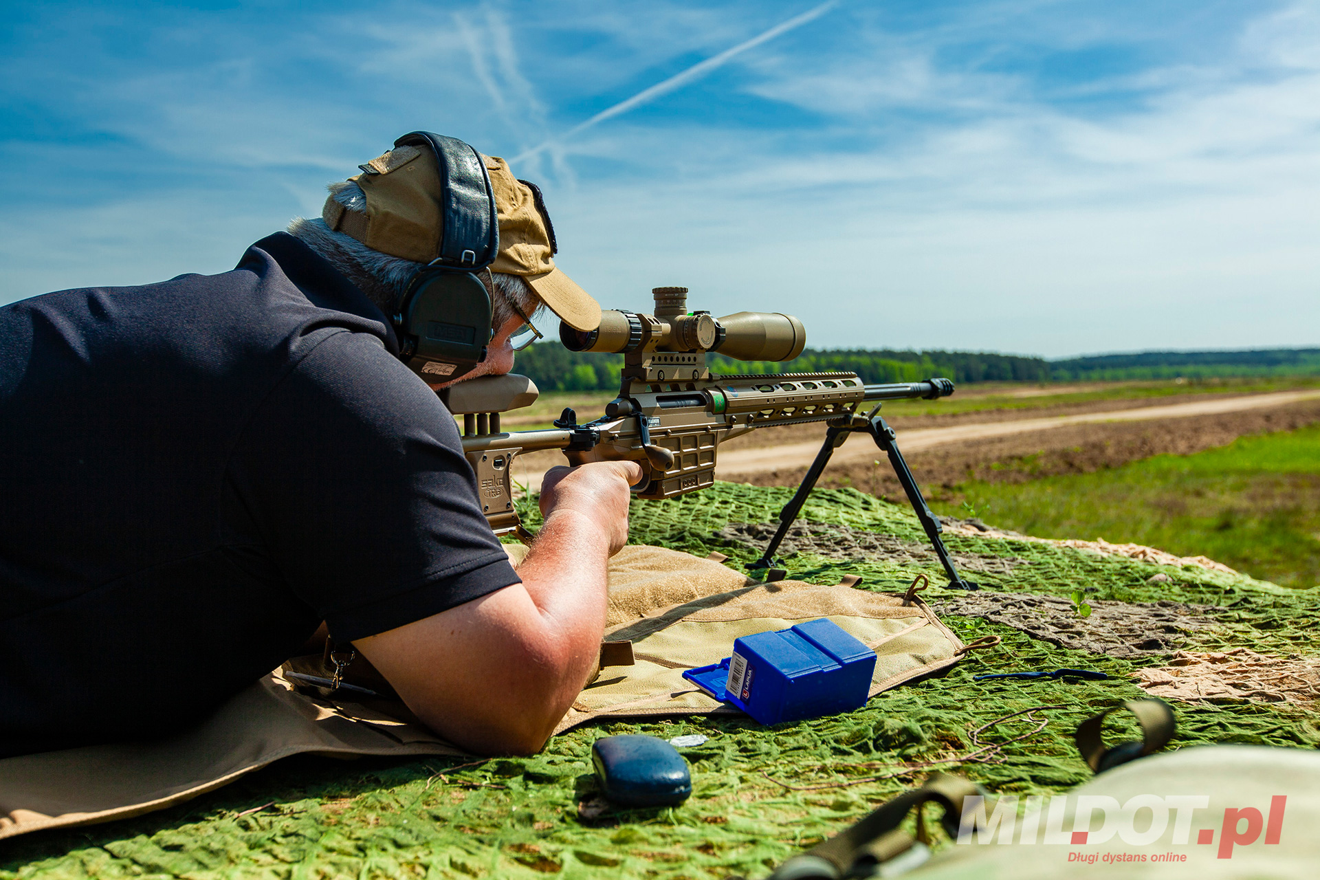 Pierwsza zmiana ruszyła o godzinie 9:00. Już podczas strzelania pierwszego składu (na 300 m) dał się zauważyć miraż, który tego dnia był sporym utrudnieniem. Wiatr może i nie był (w porównaniu z zeszłorocznymi zawodami) mocny, ale za to wiał naprzemiennie – raz z prawej, a raz z lewej strony utrudniając branie właściwych na niego poprawek. Na LONGSHOT strzelania odbywają się w taki sposób, że najpierw jest strzelany dystans 300 m (w tym roku 9 zmian), następnie wszyscy strzelają 600 m i na koniec 800 m. Dzięki takiemu rozwiązaniu każdy pojawia się na stanowisku trzy razy w czasie dnia – strzelając w teoretycznie różnych warunkach – co wyrównuje szanse. Gdyby strzelane były wszystkie dystanse na jednej zmianie mogłoby się okazać, że strzelec z porannej zmiany miał lepsze warunki niż ten ze zmian późniejszych (lub odwrotnie). Jak już wcześniej pisałem, na uwagę tego dnia zasługuje również to, że przebieg zawodów był idealny – zmiany wykonywane były co do minuty. Obsługa przywoziła tarcze do namiotów, w których sędziowie oceniali je przy obecności zawodnika. Wolny czas między zmianami można było też spędzić na licznych stoiskach firm prezentujących broń, optykę i różnego typu akcesoria. W trakcie dnia, przez słoneczną pogodę temperatura cały czas rosła – powstawał coraz większy miraż, który utrudniał celowanie na coraz dalszych dystansach, ale pomagał w „czytaniu” zmiennego wiatru jaki tego dnia był na wędrzyńskiej strzelnicy. Na bieżąco na tablicy ogłoszeniowej przy biurze zawodów zawieszane były listy z wynikami – można je było też zobaczyć na aktualizowanej co chwilę stronie internetowej organizatora. Całość strzelań tego dnia zakończyła się w okolicy godziny 18:00.