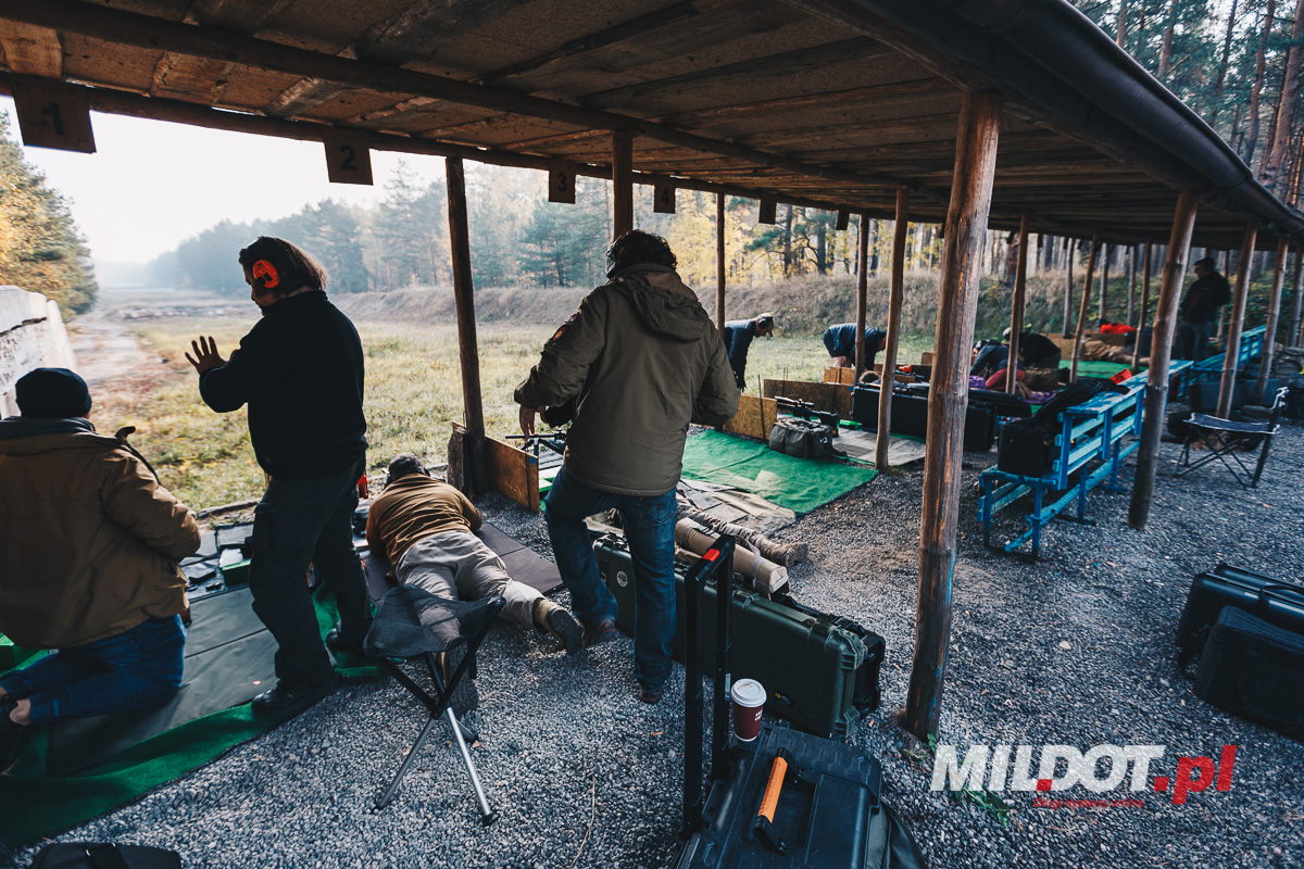 Dzień treningowy zebrał komplet uczestników. Wszyscy przyjechali przygotować się na weekendowe zawody. Mimo, że tego roku jesień jest wyjątkowo łagodna, w piątkowy poranek przypomniała o sobie mgłą, która wolno snuła się po strzelnicy opóźniając start pierwszej zmiany o ponad dwie godziny. Mimo kompletu zawodników i opóźnienia trening został przeprowadzony sprawnie i każdy miał możliwość sprawdzenia swojej broni i ustawień zanim zapadł zmrok.