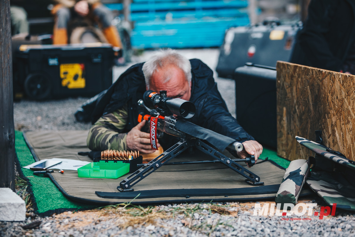 W tym miejscu chciałem wspomnieć o jednej kwestii, a mianowicie jak ważna na zawodach jest koncentracja i trzymanie się planu. Strzelając zawody tarczowe staram się trzymać zasady, że zajmując stanowisko strzeleckie mam na kartce rozpisaną „receptę” zawierającą korekty na jakich będą strzelał w danym dniu. Oczywiście, jeśli w trakcie serii widzę, że warunki się zmieniają (wiatr, czasem zauważalne przestrzeliny w tarczy), dokonuję odpowiednich zmian, ale z zasady nie kombinuję i trzymam się planu! Tak też było i tym razem – recepta była na kartce, ale zabrakło KONCENTRACJI. Strzelając na 600m dopiero po siódmym oddanym strzale przejrzystość powietrza zmieniła się na tyle, że zobaczyłem grupę swoich strzałów dokładnie o 1/2 MOA, za nisko. Spojrzałem na „receptę” 18MOA6KLIK, patrzę na celownik 18MOA2KLIK ($#*^@^%$) – przeklikałem 1/2 MOA w górę, padły trzy „dychy” – na „ratunek” było już niestety za późno. W takich okolicznościach i ogólnym ($#*^@^%$), zepsucie 800m było już tylko formalnością. Pewnie w konkurencji F/TR czy OPEN taki błąd by się nie przytrafił, ponieważ są strzały próbne, ale w przypadku klasy SNIPER nie daje szans na dobry rezultat. Tak więc moi mili jeszcze raz – KONCENTRACJA!